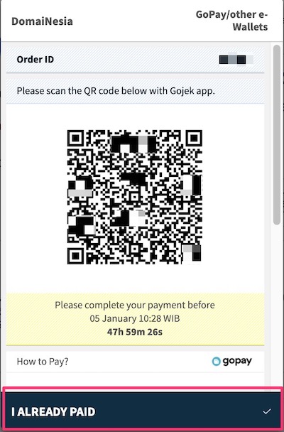 Sebelumnya, akan muncul QR Code yang berisi data dan jumlah tagihan kamu. Perlu diketahui bahwa QR Code ini dibatasi waktu. Sehingga, sebisa mungkin segera lakukan scan di aplikasi OVO kamu ya! Setelah selesai membayarย klik I Already Paid.