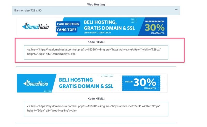 Panduan Pemasangan Banner Afiliasi DomaiNesia