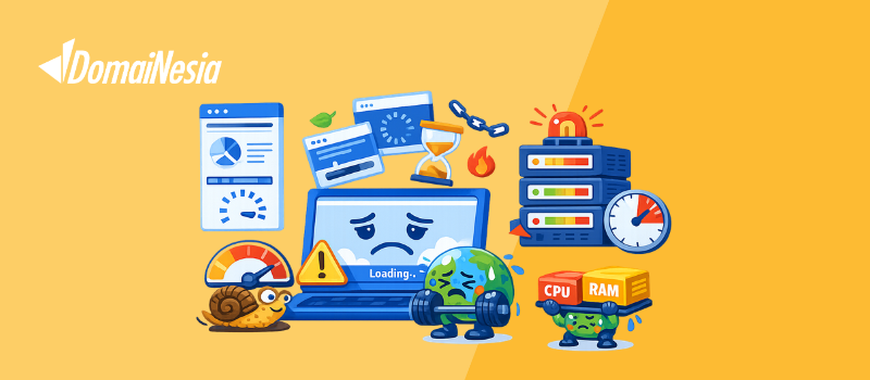 Dari sisi website, ada tiga gejala yang perlu dicermati: loading lambat di jam tertentu tapi normal di waktu lain, error 500 atau 508 yang muncul tanpa perubahan apapun di website, dan performa yang turun pelan-pelan seiring traffic naik. Satu gejala saja belum cukup untuk menyimpulkan. Tapi kalau ketiganya muncul bergantian, resource usagenya worth it dicek.